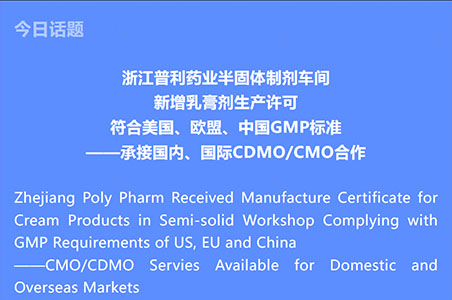 浙江普利药业半固体制剂车间新增乳膏剂生产许可,符合美国、欧盟、中国GMP标准,欢迎国内、国际CDMO/CMO合作