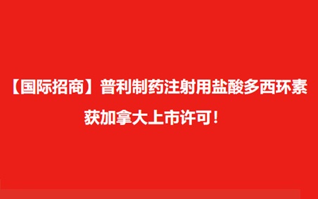 【国际招商】普利制药注射用盐酸多西环素获加拿大上市许可!