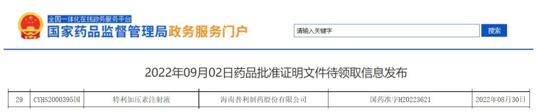 8月30日,普利制药生产的普利舒利特利加压素注射液通过国家药监局审批,视同通过一致性评价批准上市。同时普利舒利也是国内目前唯一获批上市的特利加压素水针剂型。